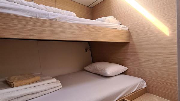 Aboard this sleek, nearly 57-foot yacht, you'll find five double/twin cabins, each featuring an operable porthole for fresh sea breezes. Every cabin boasts ample storage space, a small closet, and a mirror, providing both comfort and functionality for your stay.